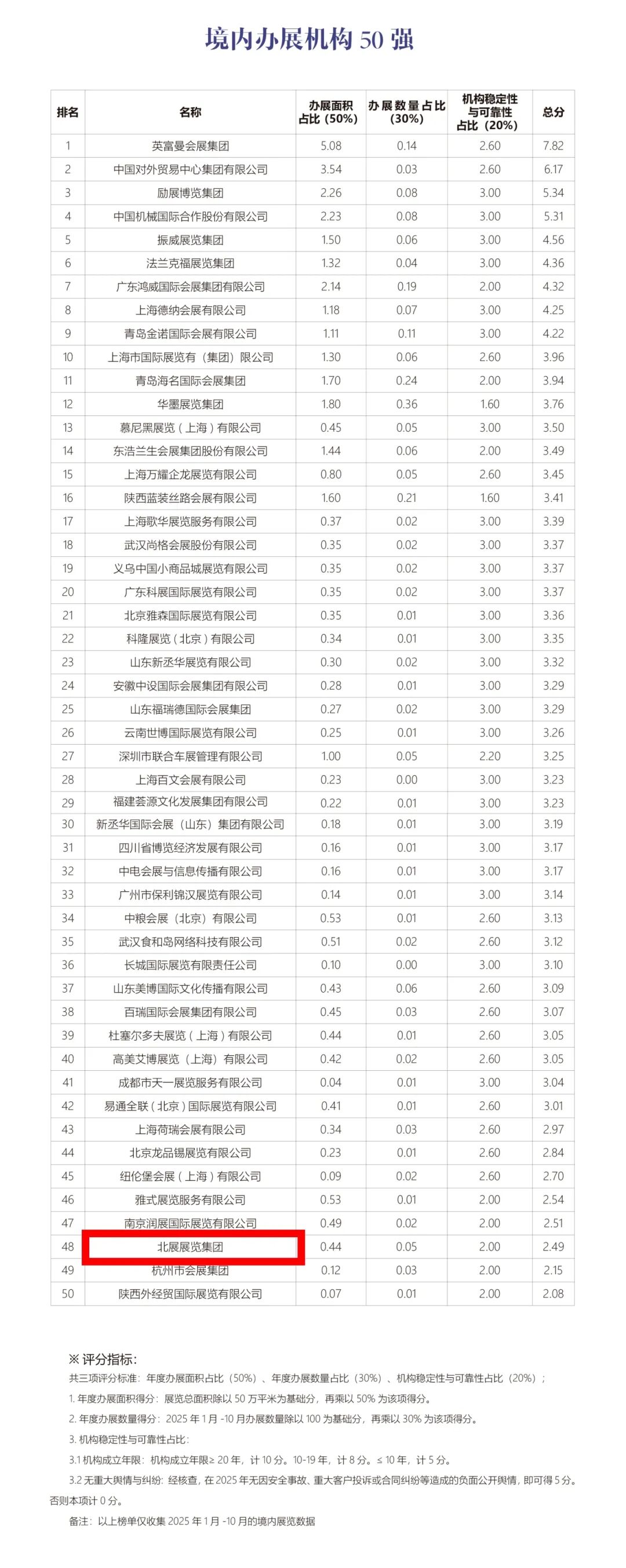 荣耀时刻!北展展览集团荣登境内办展机构前50强,硬核实力彰显会展领域标杆力量!